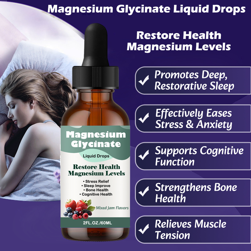 Dietary Supplement Magnesium Glycinate Liquid Drop for Stress Relief and Cognitive Health