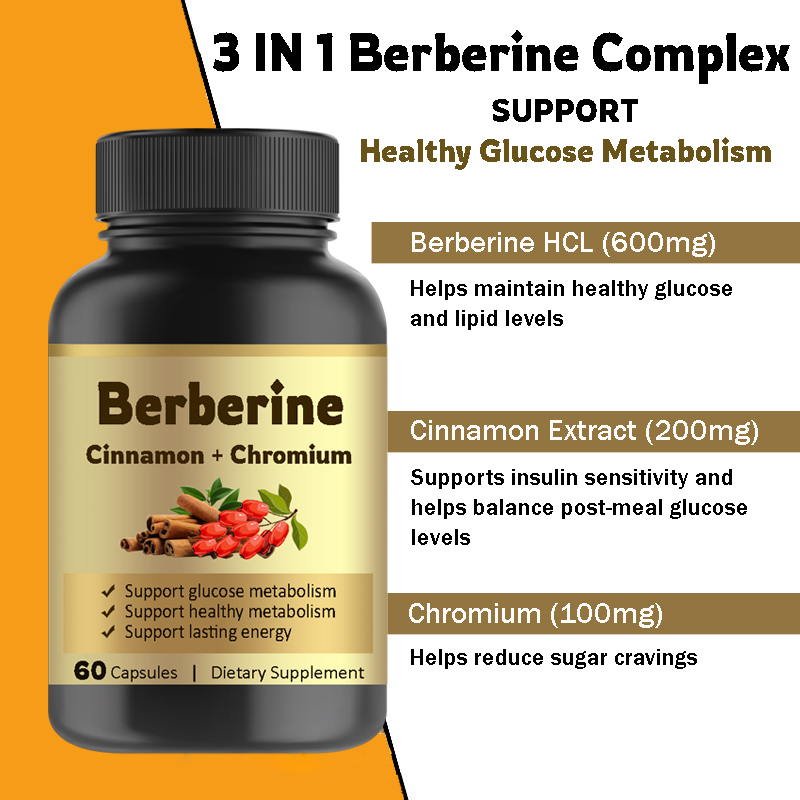 Berberine Glucose Support with Cinnamon, Chromium - Supports Metabolic Health